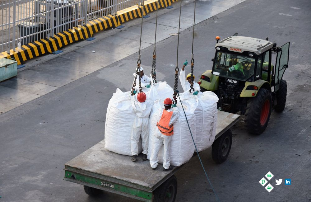 Le 1er Avril 2023, nos équipes ont achevé avec succès le débarquement de 2040 big-bags de chaux vive du navire IVS NORTH BERWICK ⚓ p/c Ambatovy.